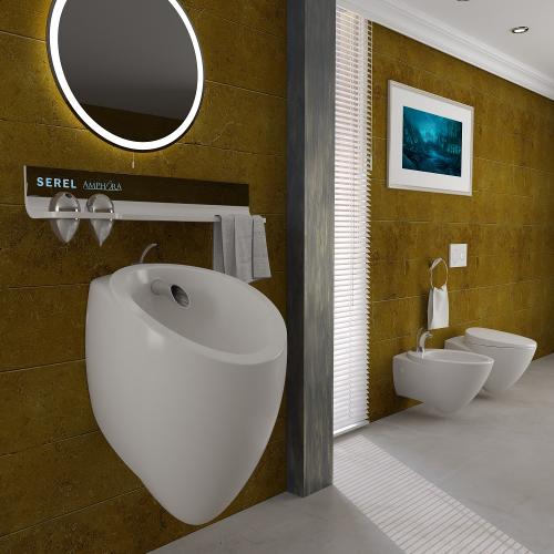 Yarışmada iyi tasarım ödülü alan SEREL Amphora Serisi, çömlekçi çarkından günümüz banyolarına uzanan bir hikâyeyi anlatıyor. SEREL teknolojisi kullanılarak yeniden yazılan Amphora hikâyesi, eskiyi günümüze taşıyan çizgileri ile aynı zamanda post modern bir yaklaşım sunuyor. Doğaya ve insana saygılı olan bu serideki klozet 4.5 litre ile tam yıkama gerçekleştirerek % 25 su tasarrufu sağlıyor. Amphora klozet kapağı tak çıkar özelliğinin yanı sıra yavaş kapanma özelliği ile de kullanım konforunu maksimuma çıkarıyor. Lavabo, klozet, bide ve pisuardan oluşan SEREL Amphora serisi Clean + ve Hygiene + özelliği taşıyor. Yani kir tutmuyor, kolay temizleniyor ve hijyeni maksimuma çıkarıyor. SEREL Amphora Serisi; sadece seramik ürünleriyle günümüz ihtiyaçlarına uygun özellikleri ve özgün, sade çizgiler taşıyan aksesuarlarıyla da banyolara yepyeni bir renk ve anlayış getiriyor.