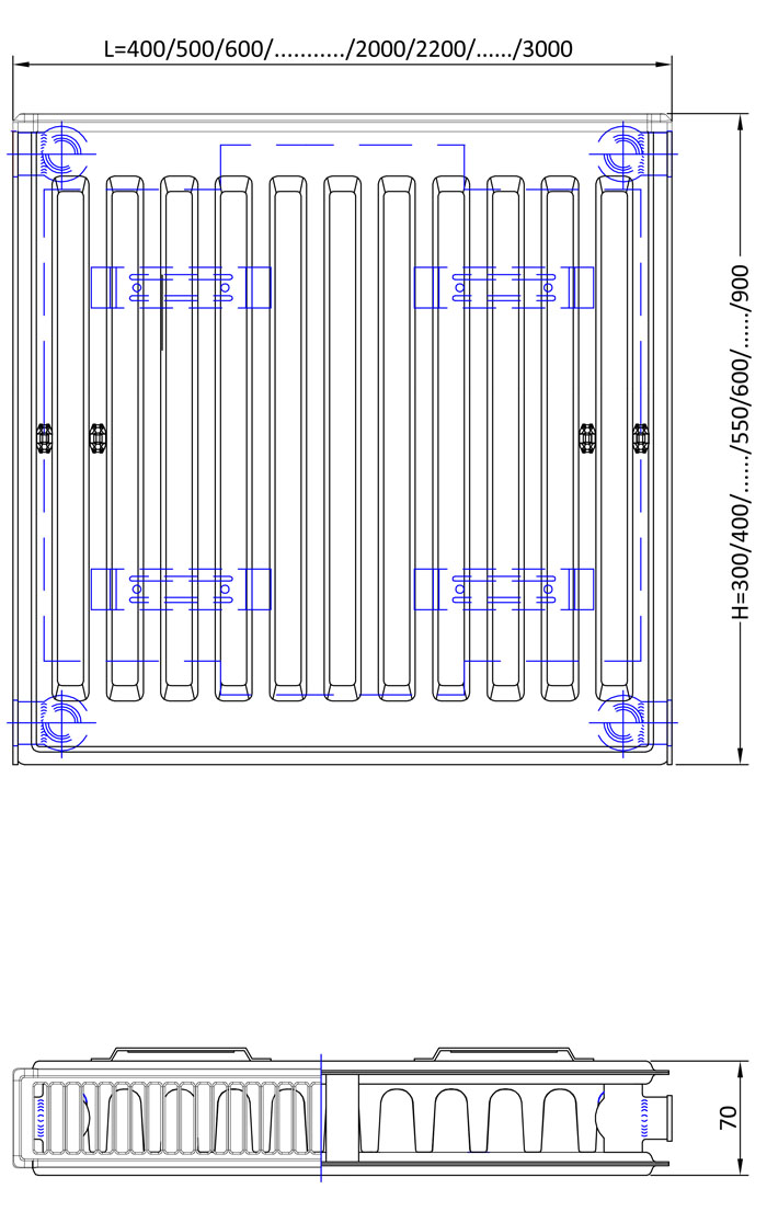 400 mm’den 3000 mm’ye kadar uzunluk seçeneği